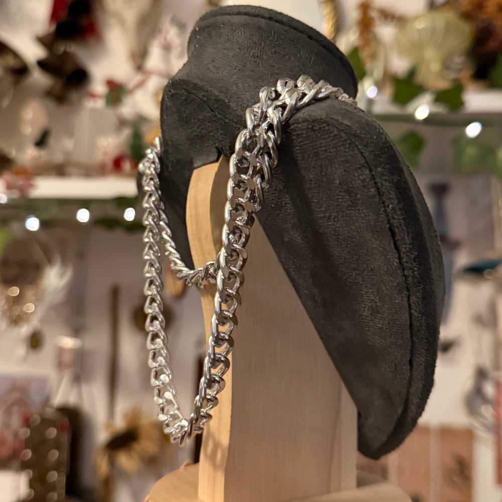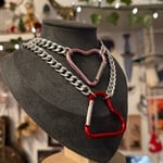 Hand pieced choker with lightweight chain, silver plated findings and a coloured heart shaped carabiner closing/pendant. Measures 16". To have this longer (18" or 20") please request this in notes at checkout.