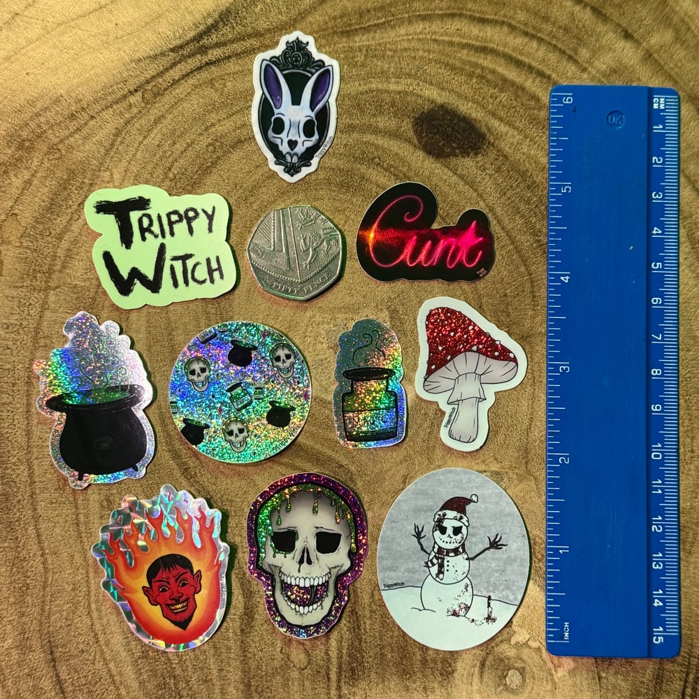 The first release of my own original hand drawn digital artwork, turned into high quality stickers with various stunning effects!